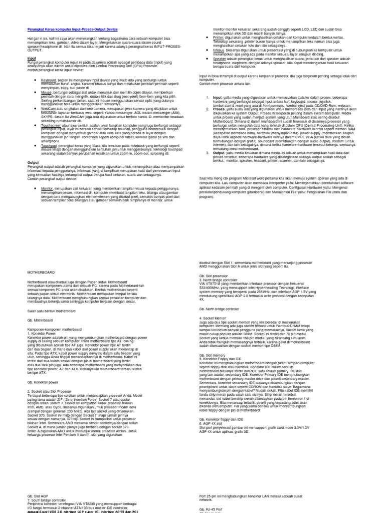 Perangkat Keras Komputer Input Proses Output